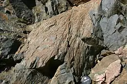 The Santa Fe impact structure is an eroded remnant of a bolide impact crater in the Sangre de Cristo Mountains northeast of Santa Fe, New Mexico.[1] The discovery was made in 2005 by a geologist who noticed shatter cones in the rocks in a decades-old road cut on New Mexico State Road 475 between Santa Fe and Hyde Memorial State Park. Shatter cones are a definitive indicator that the rocks had been exposed to a shock of pressures only possible in a meteor impact or a nuclear explosion.[2]