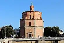 The octagonal church is located in the center of town, in Piazza Mazzini, near the Rocca of Umbertide or town castle. The church has a painting depicting San Isidoro by the school of Guido Reni and an 18th-century Assumption of the Virgin.[1] The design and construction of the church was begun in 1559 by Galeazzo Alessi and Giulio Danti; however construction continued until 1640. Other architects involved included Bino Sozi, Mariotto da Cortona (1600) and finally Bernardino Sermigni (1640).[2] The interior is framed by a circle of 16 doric columns.
