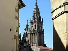 ![]() The Western façade of the cathedral as seen from the Praza do Obradoiro. | |