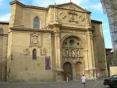 The Cathedral of Santo Domingo de la Calzada is a Roman Catholic church in the village of Santo Domingo de la Calzada (named for Saint Dominic de la Calzada), in La Rioja, Spain. It is dedicated to the Saviour and St Mary. Its facade contains statues of Emeterius and Celedonius.