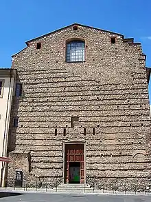The church was built by the Jesuits, who had settled in Pistoia by 1636. The funds for construction and interior decoration were given by the jurist Giovanni Visconti and the Pompeo Baly Gerosolimitano.[1] Others involved included the Cardinal Rosipigliosi (later Pope Clement IX and nephew of Baly) and the bishop Alessandro Caccia. This bishop laid the first stone in 1647, and the interior was sumptuously decorated. The church was consecrated for service in 1685. The exterior remained incomplete, and is still only a rough brick facade. The Jesuits were expelled from the church and adjacent seminary in 1773, and replaced by the Congregation of the Holy Spirit leading to the change of dedication.[2]