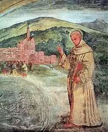 A circa 1533–1536 altarpiece by Bonifacio de' Pitati now in the chapel's apse depicts Anthony preaching from the walnut tree.[1][2] Between about 1535 and 1537, Girolamo Tessari painted a cycle of frescoes representing Saint Anthony's most important miracles in the chapel, including a half lunette fresco depicting Anthony's sermon to the fish.[1][2][5]