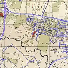 1870s map 1940s map modern map 1940s with modern overlay mapA series of historical maps of the area around Saqiya (click the buttons) | |