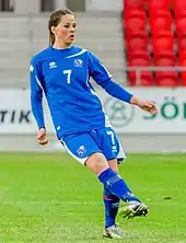 Sara Björk Gunnarsdóttir (born 29 September 1990) is an Icelandic footballer who plays for Olympique Lyonnais of the French Division 1 Féminine. She previously played for Swedish Damallsvenskan club FC Rosengård and VfL Wolfsburg. Sara Björk has been part of Iceland's national team since 2007 and represented her country at the 2009, 2013 and 2017 editions of the UEFA Women's Championship. She is the only woman to have been named the Icelandic Sportsperson of the Year twice, in 2018[1] and 2020.[2] In August 2020, she became the first Icelander to win the UEFA Women's Champions League.[3]