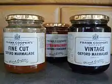 Frank Cooper's business was taken over in 1964 and production left Oxford in 1967.[4] However, its marmalades and jams remain in production as a brand of Premier Foods, which continues to call its leading Frank Cooper's product "Oxford" Marmalade. Since 2001, 84 High Street has been marked by an Oxfordshire Blue Plaque commemorating Sarah Cooper's achievement.[1]