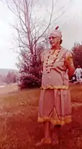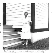 Sarah (née Aird) Lavalley (1895-1991) was a nurse, craftswoman, and community leader from Golden Lake Reserve. In addition to her social work, she is known for supporting cultural exchange between the Indigenous community that she was a part of and non-Indigenous people, as well as supporting cultural continuity through her teaching throughout her life.[1][2] Lavalley was also known as a skilled maker using traditional patterns and stitching techniques, making wearable crafts like moccasins and mittens for instance.[3]