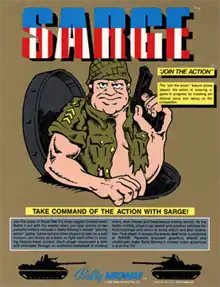 Sarge is an arcade game released by Bally Midway in 1985. Two players play at once, switching between tanks and helicopters. Players can fight each other. The game has two sets of joysticks.