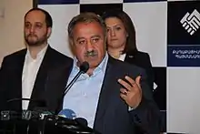 Sasun Nikoli Mikayelyan (Armenian: Սասուն Միքայելյան; born 7 November 1957) is an Armenian politician and current member of the Armenian National Assembly. He is a founding member of the Civil Contract Party.[1] During the 2020 Nagorno-Karabakh conflict he was injured in the frontline by shrapnel in the legs.[2]