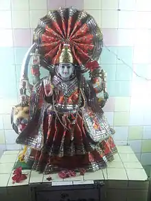 Celebrated for 16 days from Ashwina Krushna dwitiya to Vijayadashami.[10] As per tradition, the idol of Madhaba, along with the idol of Goddess Durga (known as Durgamadhaba), is taken on a tour of the temple premises. The tour within the temple is observed for the first eight days. For the next eight days, the idols are taken outside the temple on a palanquin to the nearby Narayani temple situated in the Dolamandapa lane. After their worship, they are brought back to the temple.[11]