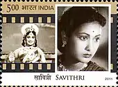 In 2011, The Government of India issued a postage stamp in commemoration of Savitri.[15] Savitri's biopic, titled Mahanati, starring Keerthy Suresh as Savitri and Dulquer Salmaan as Gemini Ganesan was released in 2018.