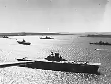 Primarily because of its great distance from German airfields, Scapa Flow was again selected as the main British naval base during the Second World War.[8]