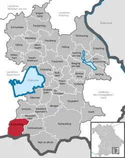 Schleching is a municipality in the district of Traunstein in Bavaria, Germany.
