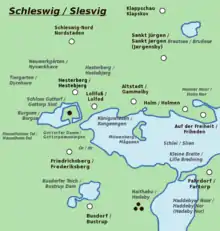 Schleswig (UK: /ˈʃlɛsvɪɡ/, US: /-wɪɡ, -wɪk, -vɪk, ˈʃleɪsvɪk/,[2][3][4][5] German: [ˈʃleːsvɪç]; Danish: Slesvig; South Jutlandic: Sljasvig; Low German: Sleswig; archaic English: Sleswick) is a town in the northeastern part of Schleswig-Holstein, Germany. It is the capital of the Kreis (district) Schleswig-Flensburg. It has a population of about 27,000, the main industries being leather and food processing. It takes its name from the Schlei, an inlet of the Baltic sea at the end of which it sits, and vik or vig which means "bay" in Old Norse and Danish. Schleswig or Slesvig therefore means "bay of the Schlei".