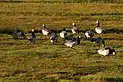 Eelgrass is the only flowering plant in the Wadden Sea which is capable of living under water. In 1930 most of the eelgrass in the Atlantic Ocean was killed by an epidemic. The eelgrass stocks haven’t regenerated since. The plants are mainly located in the northern part of Schleswig-Holstein’s Wadden Sea and cover an area of 6000 ha. Compared to 705 ha in Lower Saxony and 130 ha in the Netherlands, it is quite large. Also in contrast to the worldwide trend of decreasing eelgrass stocks, the stocks in the Frisian Wadden Sea area are increasing. During the maximum spatial extent in August eelgrass covers up to 13% of the North Frisian Wadden Sea.[13] Eelgrass areas provide habitats for marine organisms and are an important food source for barnacle geese (Branta leucopsis).[14]