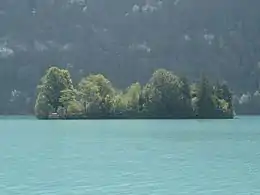 The Schnäggeninseli (German, lit. "snail island") is an island in Lake Brienz, located in the Bernese Oberland. It is the only island in the lake and among the largest in the Bernese Oberland. The island has a maximum length of 115 metres and a maximum width of 40 metres. Its highest point is 570 metres above sea level or 6 metres above lake level (564 m). The distance from the shore is about 300 metres. The island is private property and belongs to the Schloss Seeburg.