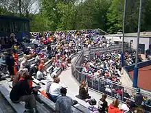 The first game at the new baseball field, which had no official name, was May 3, 1966 against the Ohio State Buckeyes.[4] Initial plans called for the new field to be adjacent to a new football stadium, but the stadium would later be built at a different site further east as Dix Stadium.[5] In 1990, the field was dedicated in honor of Kent State alumnus Gene Michael, who played and managed professionally in Major League Baseball.[6] Later that decade, permanent bleacher seating was added behind home plate.[7]