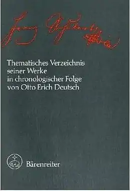 - (in German) Otto Erich Deutsch, with revisions by Werner Aderhold and others. Franz Schubert, thematisches Verzeichnis seiner Werke in chronologischer Folge (New Schubert Edition Series VIII Supplement, Volume 4). Kassel: Bärenreiter, 1978. ISMN 9790006305148 — ISBN 9783761805718