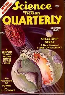 To spread his costs over more magazines, Silberkleit soon decided to launch two additional titles.[7] In November 1939 the first issue of Future Fiction appeared; it was followed in July 1940 by Science Fiction Quarterly. Hornig was editor for all three of the magazines. In October 1940, Hornig, who was a pacifist, received his military call-up. He decided to move to California and register as a conscientious objector; he continued to edit the magazines from the west coast, but Silberkleit was unhappy with the arrangement. Silberkleit allowed Hornig to retain his post as editor of Science Fiction, and offered the editorship of the other two titles to Sam Moskowitz.[2][7][8] Moskowitz declined, saying afterwards that he "would never strike at a man's job",[9][notes 1] but Donald Wollheim, a member of a group of aspiring writers called the Futurians, heard about the offer. Wollheim told Robert W. Lowndes, another member of the Futurians, about the opening, and urged him to write to Silberkleit. Lowndes later recalled Wollheim's idea: "In the letter, I'd suggest that it might be a good idea to add a science fiction title to the list, offering my services as editor at a slightly lower price than Hornig was being paid, and also find fault with all the other sf titles presently out, but particularly with Hornig's".[7][10] Lowndes relates that Silberkleit took the bait and hired him in November 1940; Hornig recalls the separation as being by mutual consent because of his move to California. Lowndes subsequently agreed that this was likely to be the real reason Silberkleit replaced Hornig.[11][12]