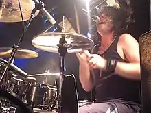 Scot uses CRUSH and Tama drums, Remo drumheads, Zildjian cymbals, and Vic Firth signature drumsticks.