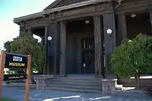 The Winema Theater built in 1919 according to designs by Alfred Henry Jacobs. Its design evokes a Tyrolean Swiss chalet with exposed wooden beams[14] and the structure was built with redwood.