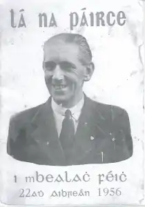 In 1931, despite not being a member of the party, Fianna Fáil members in Stranorlar, Co. Donegal attempted to select McCool as a candidate, without success.[13] That same year the IRA attempted to launch its own political party, Saor Éire. McCool attended the inaugural meeting and seconded a motion sending fraternal greetings to the USSR.[14] The success Fianna Fáil and the IRA at this time encouraged McCool, writing to fellow republican Frank Ryan in 1932 he said that the crowd (at the Drumboe march) "did one's heart good after all the black years... the youth are with us and that's everything".[15]