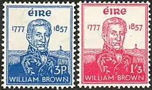 Between 1943 and 1957 O'Sullivan designed commemorative stamps for the Irish Post Office of Douglas Hyde, based on his own portrait of him, William Rowan Hamilton, Edmund Rice and Admiral William Brown.[7]