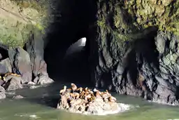 The sea level portion of this cave and the sea cliff rocks just outside the cave have become, over the centuries, the only known mainland rookery and hauling area (wintering home) of the Steller's sea lion and—to a lesser extent—the California sea lion.