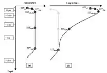 There are a variety of techniques for measuring this parameter that can potentially yield different results because different things are actually being measured. Away from the immediate sea surface, general temperature measurements are accompanied by a reference to the specific depth of measurement. This is because of significant differences encountered between measurements made at different depths, especially during the daytime when low wind speed and high sunshine conditions may lead to the formation of a warm layer at the ocean's surface and strong vertical temperature gradients (a diurnal thermocline).[5] Sea surface temperature measurements are confined to the top portion of the ocean, known as the near-surface layer.[6]