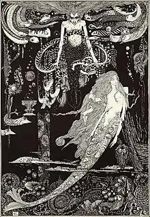 Traditionally, sea witches were witches who appeared among sailors or others involved in the seafaring trade. A sea witch may be presented as a magical or fairy creature such as a mermaid or selkie, or as an ordinary human who uses magic to influence the sea. Their powers ranged from control over the winds and weather or the ability to influence the catches of fisherman, to complete power over the sea, the tides, and the moon. Offending a sea witch by such means as refusing to pay her for her services, insulting her looks, or refusing to acknowledge her powers could end in disaster, as the sea witch might choose to destroy an entire ship.