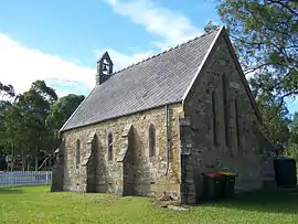 Seaham was partially destroyed by bushfires on 14 January 1939, the smoke of which could be seen as far north as Forster.[18][19] At "Porphyry", the circa 1839 home of Mr and Mrs Gavin Ralston was completely destroyed, along with outbuildings and stables.[20] At neighbouring "Felspar", the Graham family escaped "with the utmost difficulty" after the roof of a kitchen had collapsed in their burning home.[21] Three automobiles went in the destruction at "Felspar", in addition to the period relics and furniture inside the homestead.[22] In Seaham village, the efforts of firefighters were concentrated on extinguishing flames around the post office and School of Arts (1902). Although both public buildings were saved, the Seaham Presbyterian Church, Seaham Public School and several homes were lost.[19] A "desperate battle" was fought at "Brandon", south of the town proper, where two homes were lost.[23] A "good save was effected" at the circa 1884 homestead, where the fire was extinguished at the backdoor.[24]