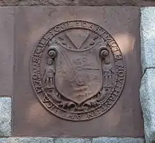 engraven in such a form and with such an inscription as shall be devised by the said Trustees for the time being or by the major part of any seven or more of them convened for the service of the said College as is above directed.[1]