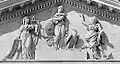 The design has some similarities to Genius of America, the sculpture over the central east pediment of the Capitol building which had recently been completed. Made by Luigi Persico from 1825 to 1828, it also features three female figures, representing America, Justice, and Hope. Elements shared between the two designs include a July 4 pedestal, a scroll with a Constitution inscription, the scales of justice, and an eagle.