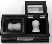 The Senate gavel is wielded by the presiding officer of the Senate, usually either the Vice President or President pro tempore, and is used to signify the commencement or adjournment of a Senate session. It is made of ivory, has no handle, and is 21⁄2 inches high by 13⁄8 inches in diameter. The original gavel was in use at least as far back as 1831, and according to one account was used by John Adams during the first Senate meetings on March 4, 1789.[19][20]