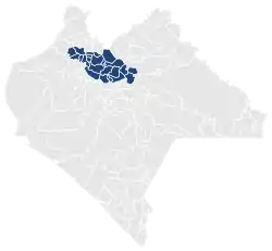 The Second District of Chiapas is located in the Altos de Chiapas region and covers the municipalities of Aldama, Bochil, Chalchihuitán, Chapultenango, Chenalhó, Francisco León, Huitiupán, Ixhuatán, Jitotol, Larráinzar, Ocotepec, Pantelhó, Pantepec, Pueblo Nuevo Solistahuacán, Rayón, San Andrés Duraznal, San Juan Cancuc, Santiago el Pinar, Simojovel, Sitalá, Tapalapa and Tapilula.[1]