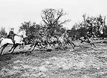Territorial Force mounted brigades were known by their district name until August 1915, when they became numbered.[1] For most of their existence the second line regiments and brigades were used as a coastal defence force.[2] Most of the second line regiments were converted to cyclist battalions in 1916, and never served in a recognised theatre of war.[3] Several were disbanded and its men transferred to other regiments and one served as an army corps cavalry regiment on the Western Front.