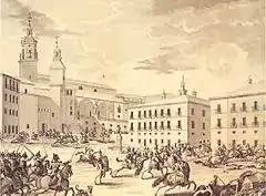 This arose first as a City gate, then had a reform in 1650 that changed it as a belfry but remaining the gateway, and all part of its structure, adding the top half of the tower, being an element of the walls, on this side of the city, while existed this building.[1]