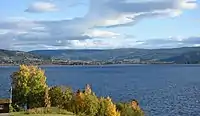 Selbusjø or Selbusjøen is the 17th largest lake in Norway. It is located in Trøndelag county, primarily in the municipality of Selbu, although the western end of it lies in the neighboring municipality of Trondheim. The 58.26-square-kilometre (22.49 sq mi) lake is the largest lake in the southern part of Trøndelag county. Selbusjø is part of the Nea-Nidelv watershed, with the Nea River flowing into it on the eastern end and the Nidelva River flowing out the western end. The deepest part of the lake reaches 206 metres (676 ft) below the surface. The villages of Selbustrand, Fossan, Tømra, Trøa, Innbygda, Mebonden, Vikvarvet, and Sjøbygda lie around the lake.[1]