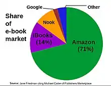 - Jane Friedman, 14 September 2017, Publishing Industry Status Report: Important Stories for Authors in 2017, Retrieved 13 November 2017, "... the universe of Amazon ebook sales ... self-published work constitutes about 40 percent of unit sales ... publishers capture about 80 percent of the ebook dollars because of their higher pricing...