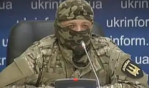 Semen Ihorovych Semenchenko (Ukrainian: Семен Ігорович Семенченко) is a former deputy to the Verkhovna Rada of Ukraine, First Deputy Chairperson of the Verkhovna Rada of Ukraine Committee on National Security and Defence[2] and the commander-founder of the volunteer territorial defence battalion "Donbas", based in Donetsk.[3][4] He was a deputy of the Verkhovna Rada from 2014 to 2019.[5]