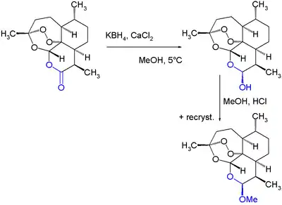 - Boehm M, Fuenfschilling PC, Krieger M, Kuesters E, Struber, F (2007). "An Improved Manufacturing Process for the Antimalaria Drug Coartem. Part I". Org. Process Res. Dev. 11 (3): 336–340. doi:10.1021/op0602425.