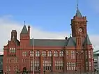 The Senedd consists of 60 elected members. They use the title Member of the Senedd (MS) or Aelod o'r Senedd (AS).[42] The executive arm of the Senedd, the Welsh Government, has been a Labour administration since its inception in 1999. Currently it is led by First Minister, Mark Drakeford, since December 2018.[43] The government between 2007 and 2011, had been a coalition between Labour, led by First Minister Carwyn Jones and Plaid Cymru, led by Deputy First Minister Ieuan Wyn Jones; since 2016, Labour has been in coalition with the Liberal Democrats and an independent member.[44][45] The executive and civil servants are mainly based in Cardiff's Cathays Park while the MSs, the Senedd Commission and Ministerial support staff are based in Cardiff Bay, where a new £67 million building, the Senedd, has been built.[46][47][48]