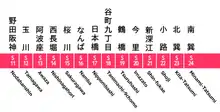 - 路線別で探す 千日前線 (in Japanese). Osaka Municipal Transportation Bureau. Retrieved August 6, 2014.