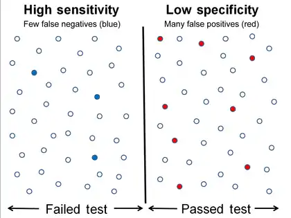 For all testing, both diagnostic and screening, there is a trade-off between sensitivity and specificity. Higher sensitivities will mean lower specificities and vice versa.