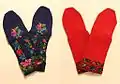 The characteristic feminine girls' shoes were white socks and colorful slippers as well as fancy shoes. For everyday, they wore wool woven socks, the natikače or čarapci. For work they wore opanci made of leather as well as wool. During winter they wore slippers with wooden base called cokule or klompe.[6]