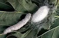 - The larvae feed on mulberry leaves.