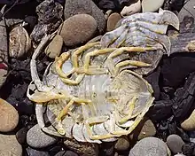 Underside of an unidentified (dried) marine serolid isopod seen on the shore in Punta Arenas, Chile. About 3-4cm in length.