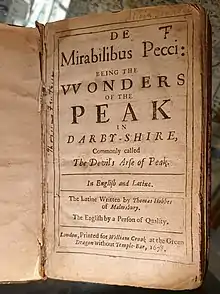 The Seven Wonders of the Peak were described in the 17th century by the philosopher Thomas Hobbes in his book De Mirabilibus Pecci: Being The Wonders of the Peak in Darby-shire, Commonly called The Devil's Arse of Peak. The wonders refer to places to visit in the Peak District of Derbyshire in England.[1]