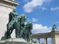 Left side view of some of the statues of the Seven chieftains of the Magyars