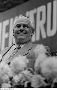 Pieck identified the "defeat of the German proletariat" and the rise of Nazism as the "greatest event that marked the first years of the crisis in the capitalist countries," stating that from the spring of 1932 it had "already become evident that the fascists had a considerable advantage over the Communists in the matter of mobilizing the masses.[15] The communists had attempted to change the situation by proposing a united front with the Social Democratic Party of Germany and its associated trade union federation, the Allgemeiner Deutscher Gewerkschaftsbund (ADGB).[16] This effort had been rebuffed, Pieck said, with the failure of the Social Democratic political and labor movement to join general strikes following the expulsion of socialist ministers from the government of Prussia in July 1932 and the coming to power of the Hitler government in January 1933 singled out for specific criticism.[17]