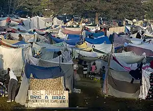 The devastating earthquake in 2010 caused over a million Haitians to move to refugee camps where conditions are dangerous and poor.[5] A study by a human rights group found that 14% of Haitian households reported having at least one member suffered sexual violence within two years after the earthquake.[6] In 2012, sexual assaults in Port-au-Prince were reported at a rate 20 times higher in the camps than elsewhere in Haiti.[7]